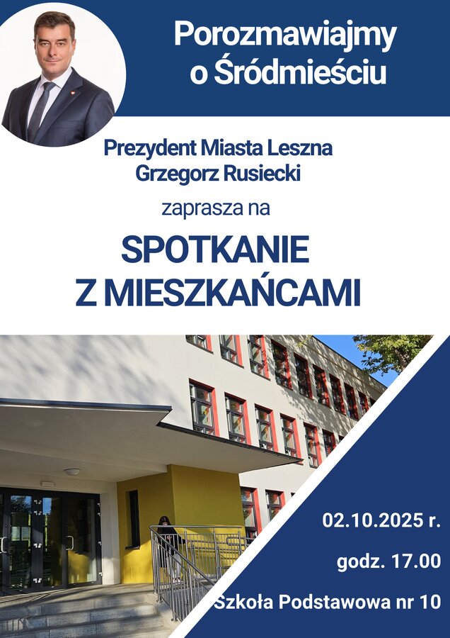 – Będzie to okazja, by porozmawiać o sprawach ważnych dla miasta i wysłuchać głosu mieszkańców dzielnic Leszna. To bardzo ważne, abyśmy wspólnie kształtowali przestrzenie miejskie – podkreśla prezydent Leszna, Grzegorz Rusiecki.