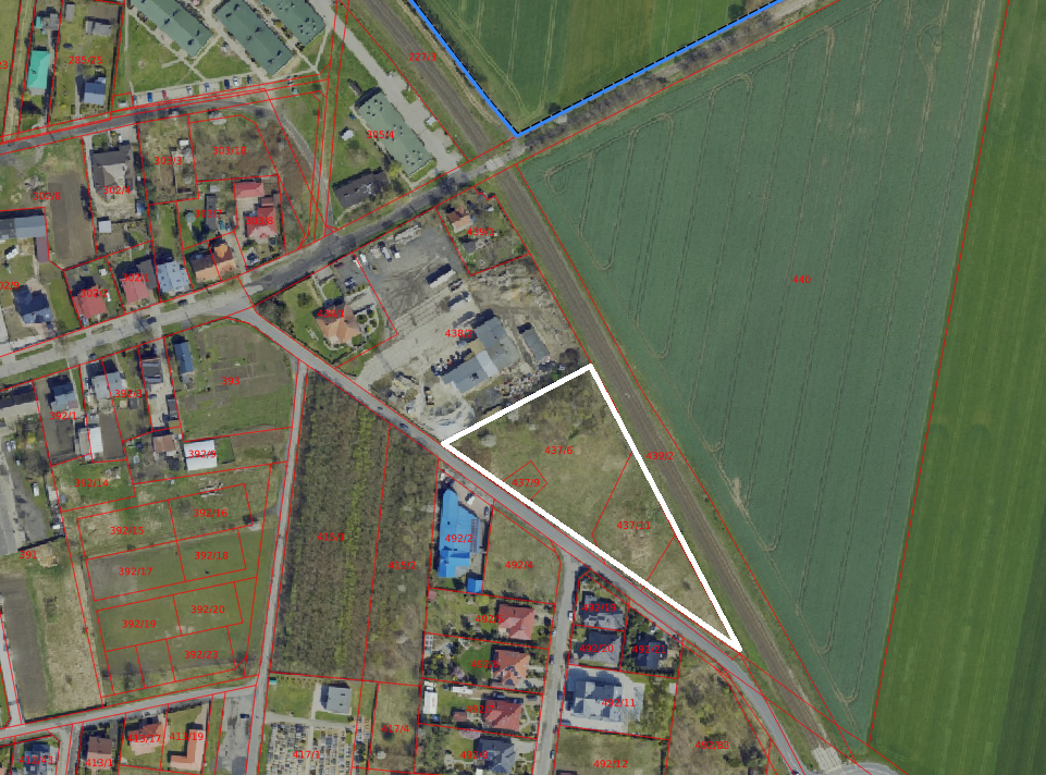 - Opis nieruchomości: nieruchomość gruntowa niezabudowana, kształt nieregularny- trójkąta, porośnięta trawą oraz miejscowo drzewami i krzewami.