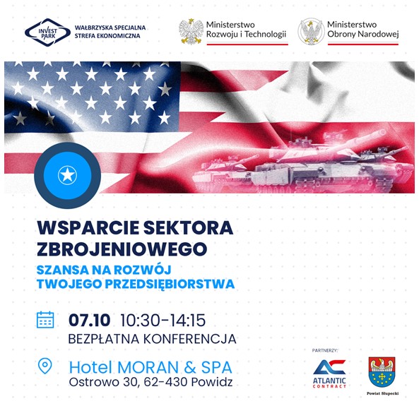 „Wsparcie sektora zbrojeniowego – Szansa na rozwój Twojego przedsiębiorstwa”, która odbędzie się 7 października w Hotelu MORAN & SPA (Ostrowo 30, 62-430 Powidz)