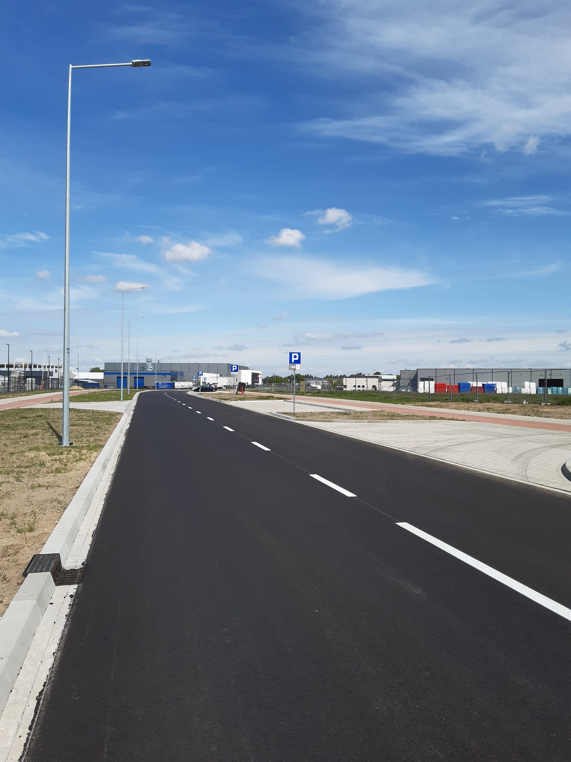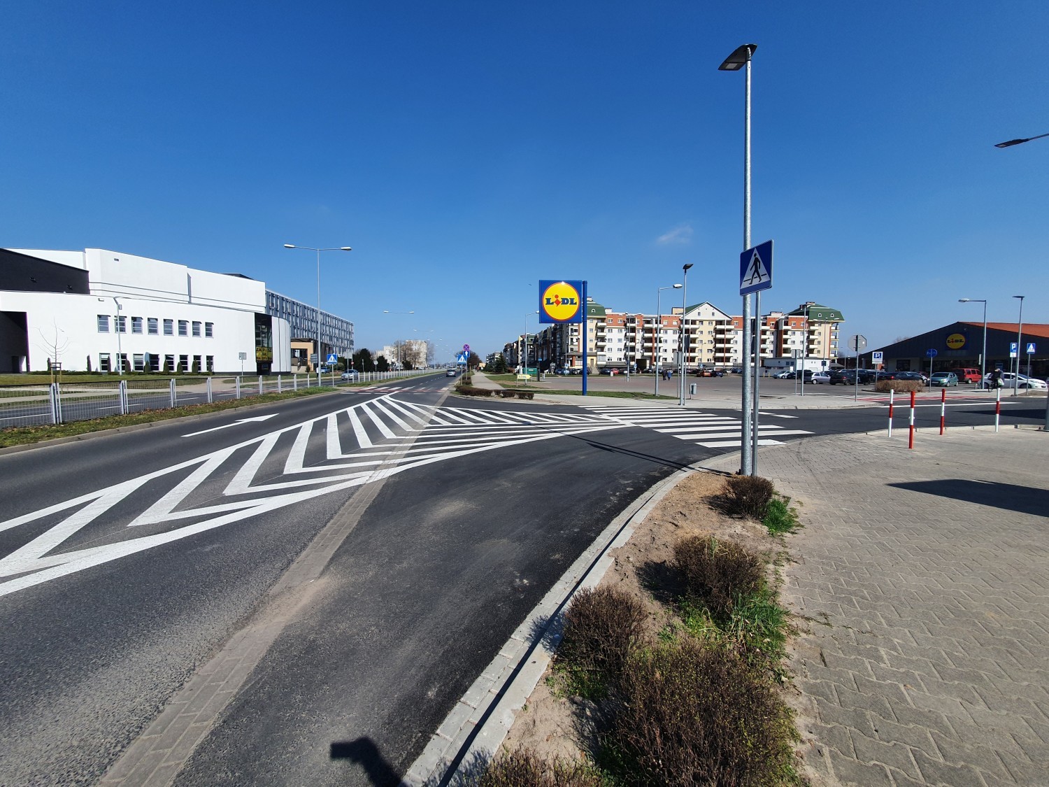 w każdym kierunku i środkowy pas jako pas włączenia i wyłączenia), budowa ciągów pieszo-rowerowych, przebudowa oświetlenia ulicznego, budowa kolektora deszczowego.